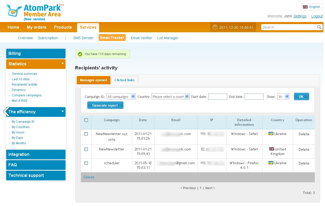 - Log in to your Email Tracker Control Panel to analyze gathered statistics.