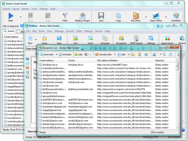 on toolbar to run Atomic Mail Sender and send bulk mail to all extracted email addresses. If Atomic Mail Sender is not installed, Atomic Email Hunter will offer to download and install it.