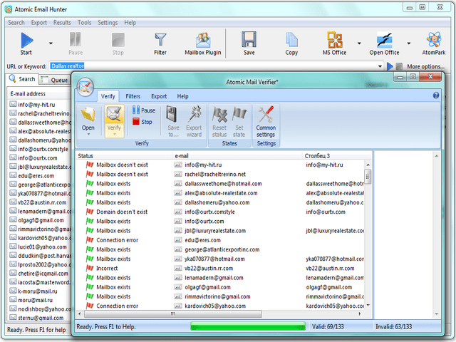 to run Atomic Mail Verifier and verify extracted email addresses. Or click