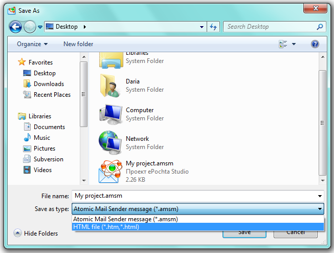 and enter the filename and location to save the message to. The default extension is .amsm.