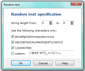 command to add the random text tag to the message. In the new dialog box, you should specify the text generation options.