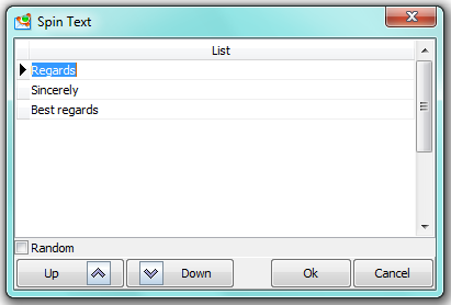 “Random” — if the box is marked the text will be inserted randomly.