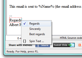 Using the context menu (right-click in the spin-text field), allows to change the text choosing another variant for the current message.