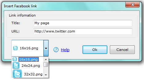 There are two kinds of the social icons: “Facebook” and “Twitter”.