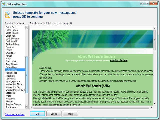 Download more templates: Atomic Mail Sender has a few built-in templates. You can download more free and commercial templates from the “Templates section” of our site.