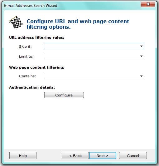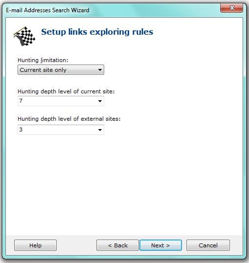 The Wizard helps you create a new search project and enter some limitation rules. The Wizard is the best starting point for using Atomic Email Hunter.