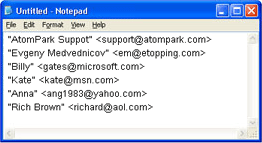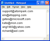 Atomic Email Hunter gives you an opportunity to save extracted e-mail addresses into the next formats: