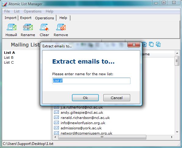 This operation deletes the name of the owner of email. For example it eliminates Support from email Support tech@atompark.com and as a result saves only email into separate list.