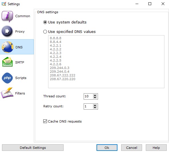 Use system defaults — if this option is checked, Atomic Mail Verifier will try to load system default DNS settings.